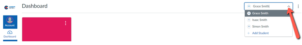 Observers who are linked to multiple students can filter their dashboard view by student. You can select which student’s dashboard you ant to view by using the Student Drop-down Menu to switch between children.