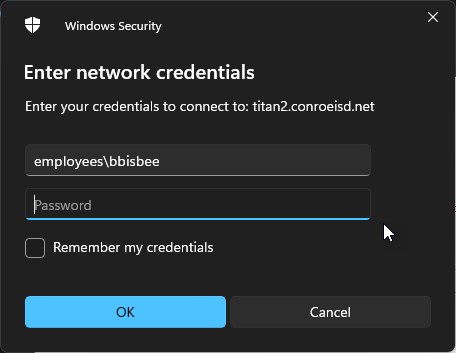 To Map your S: Drive, enter: \\titan2.conroeisd.net\employee$\DEPARTMENT NAME\Share