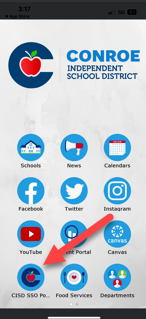 When your app opens to “All Means All”, wait…. It will change to the app version of the CISD home page. Now click the SSO tile in lower left.