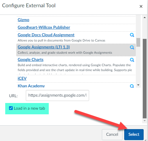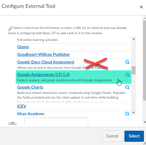 Scroll down the list and select Google Assignments (LTI 1.3):