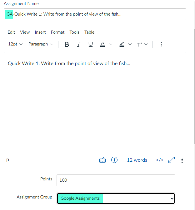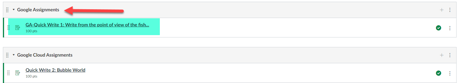 It is suggested that you create an Assignment “Group” called Google Cloud Assignments and a Google Assignments. As you convert a Google Cloud Assignment to a Google Assignment you would move it from one group to the other. In addition, you can add GA to the title to easily identify which assignments have been converted.