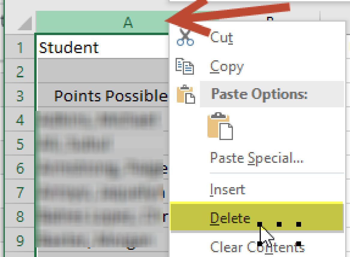 Right click on the “Student” column to delete it.