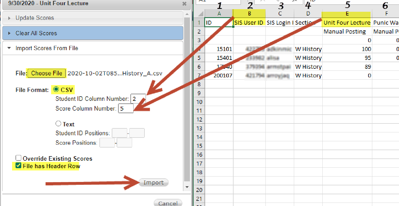 Student ID Column Number: 2 (SIS User ID, Column B)