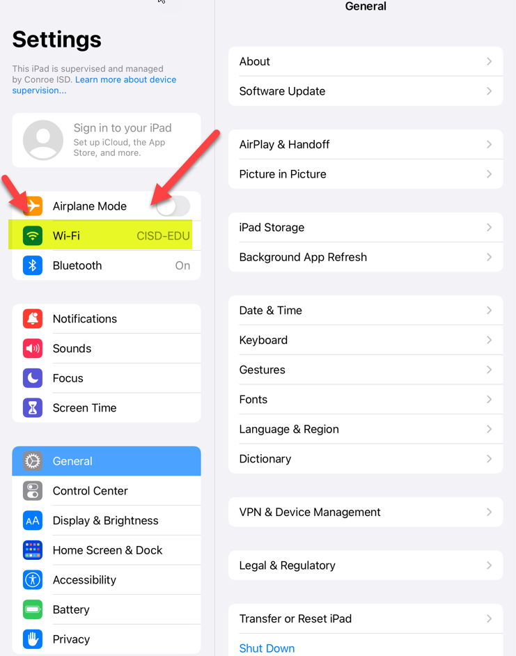 This guide explains how to ensure your district iPad is correctly connected to the CISD-EDU network. These steps are particularly useful after wiping and setting up an iPad to verify the device has switched to the correct network.