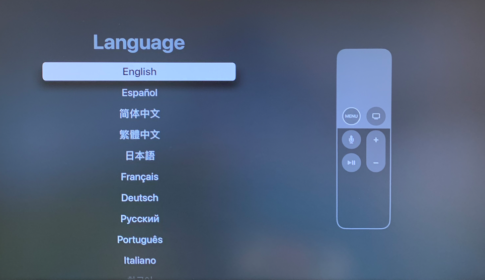 Click the remote to view the language options and select English.