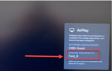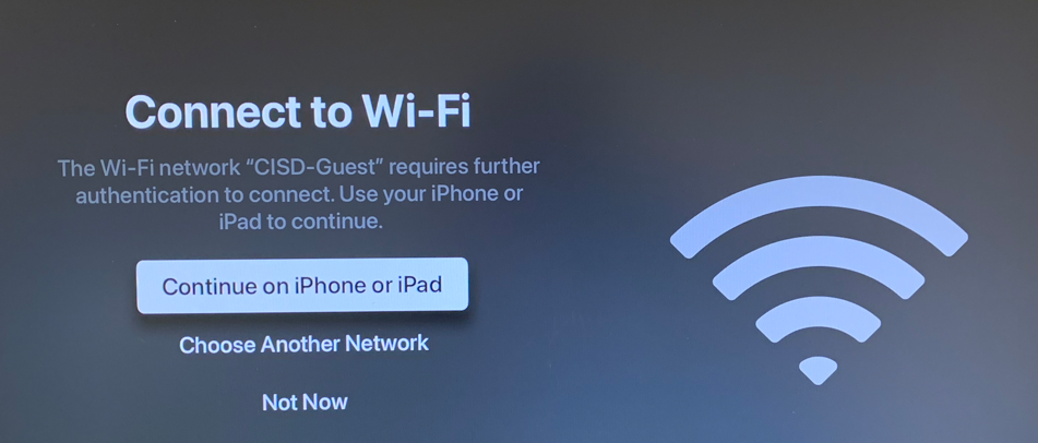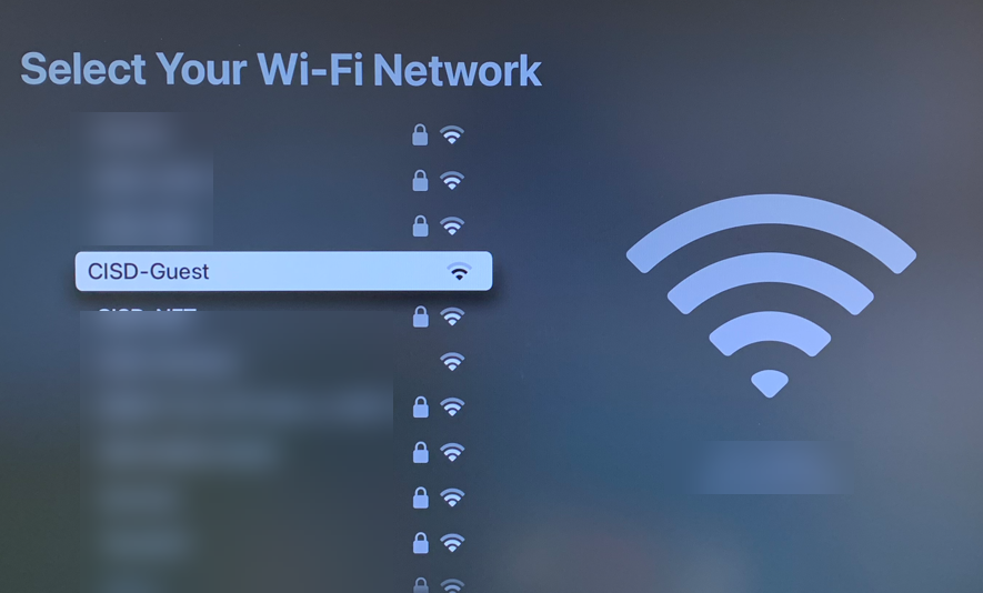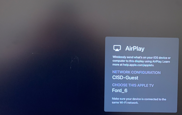 The Apple TV will initially remain on CISD-Guest, but it will eventually switch over to CISD-EDU automatically once the profile updates.