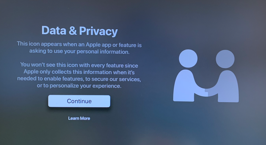 Select Continue on the Data & Privacy screen.