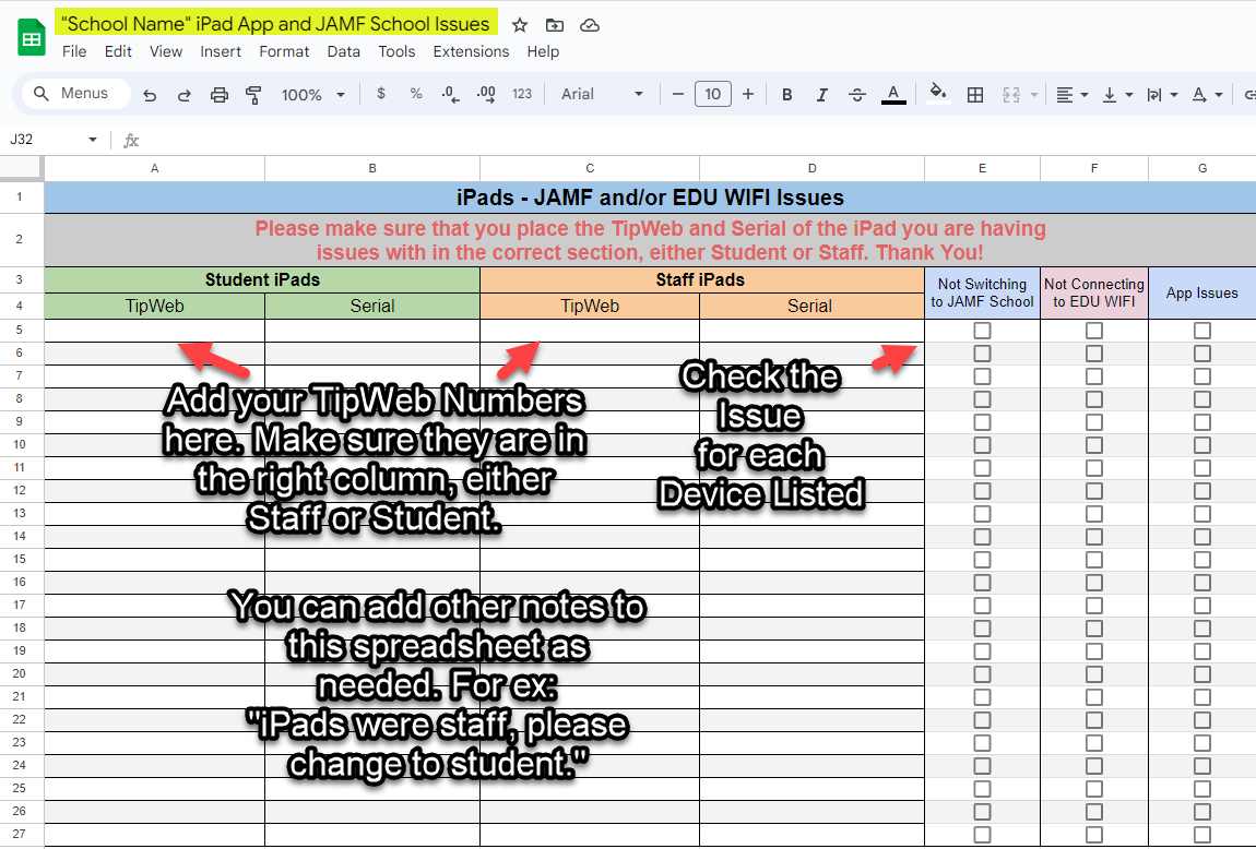 Remember that you can use this Google Spreadsheet again for future iPad issues that you need to fill out the iPad App and JAMF School Issues Form for.