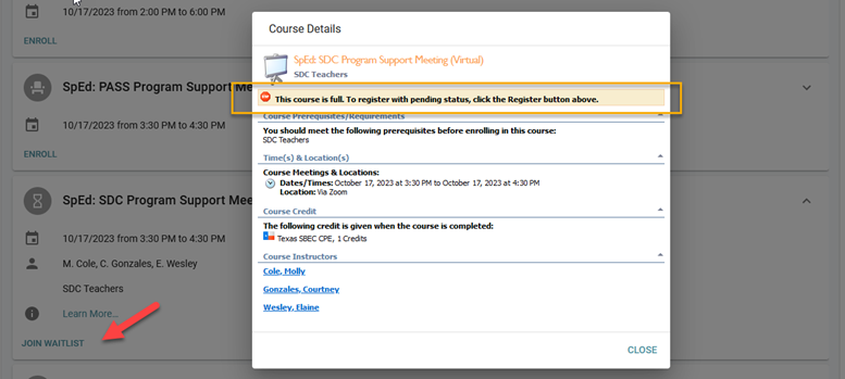 What to do: Click Join Waitlist. If a spot opens up, you will be notified via email.